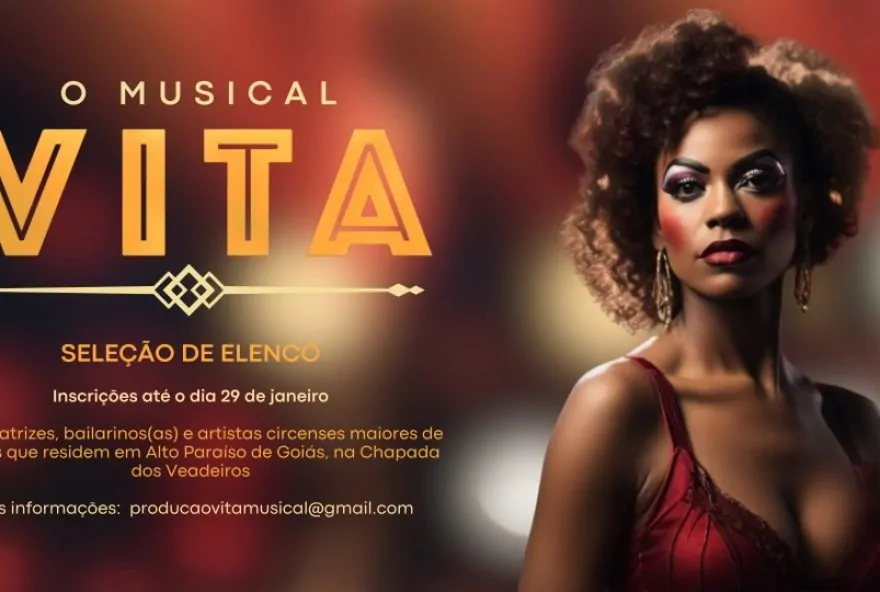 A produtora Lince Arte Experience está com inscrições abertas para formar elenco do espetáculo musical VITA. A pré-seleção segue até 29 de janeiro. A peça vai circular pelo interior de Goiás com dez apresentações em abril e maio próximos. O espetáculo conta com apoio do Governo de Goiás, por meio do Fundo de Arte e Cultura (FAC), mecanismo de fomento gerenciado pela Secretaria de Estado da Cultura (Secult).