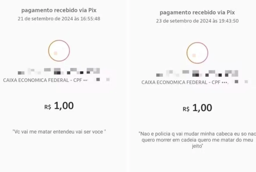 Nos últimos meses, o professor começou a usar transferências via PIX de apenas R$ 1 para enviar mensagens agressivas. Em uma delas, enviada no sábado, 21, ele afirmou: “Você vai me matar, entendeu? Vai ser você”. Em outra, na segunda-feira, 23, ele ameaçou: “Não é a polícia que vai mudar minha cabeça. Eu só não quero morrer em cadeia. Quero me matar do meu jeito”. O tom das mensagens indicava que ele estava disposto a se machucar e a levar outras pessoas junto.