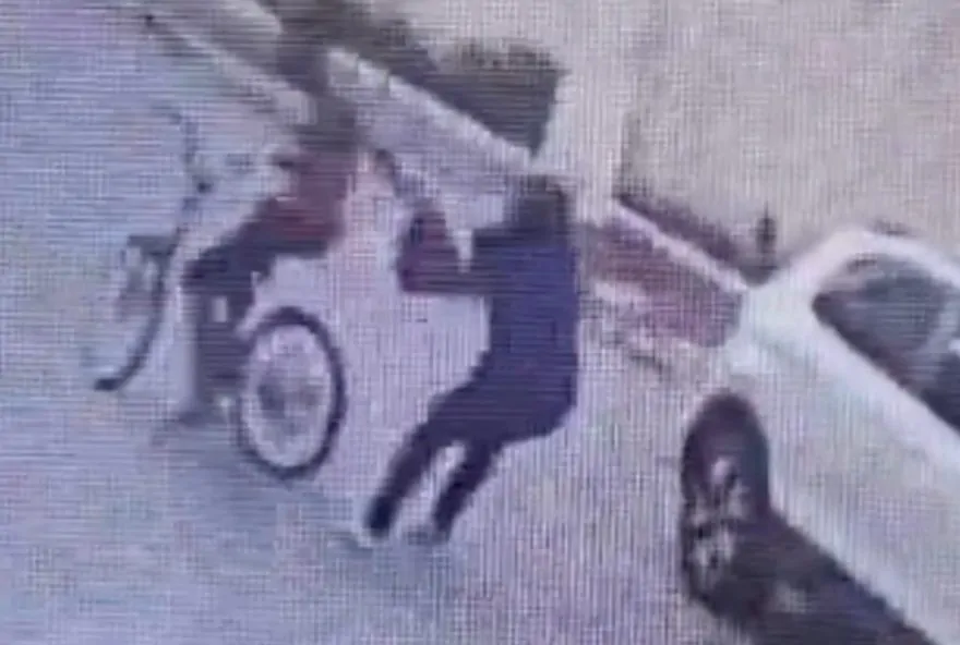 As imagens mostram a mulher segurando firmemente sua bolsa, resistindo aos puxões do criminoso e chegando até a derrubá-lo no chão. A cena é impressionante, com a vítima desferindo golpes com o objeto contra o assaltante, que tenta se desvencilhar da situação. Mesmo depois de levantar-se, o homem não foi capaz de completar o roubo e acabou fugindo do local em direção à rua.