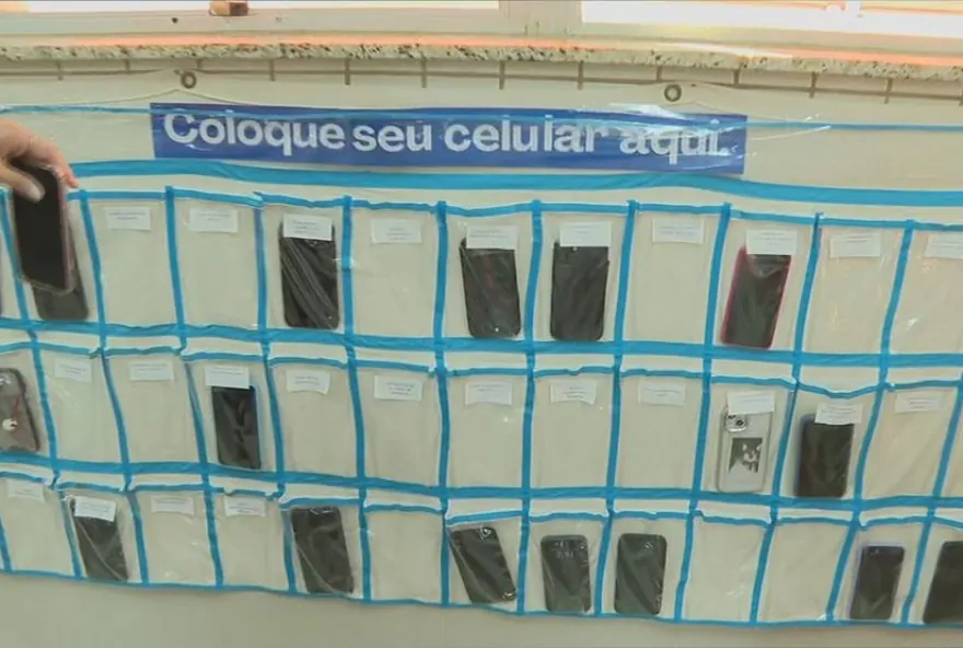 Em uma escola privada em Taguatinga, no Distrito Federal, foram instalados bolsões na parede para que os alunos possam depositar seus celulares durante o horário das aulas. A retirada dos aparelhos só é permitida no final da aula, no entanto, aqueles que preferirem podem guardar o celular desligado dentro da mochila. Essa iniciativa visa promover um ambiente mais focado e livre de distrações tecnológicas durante as atividades escolares.