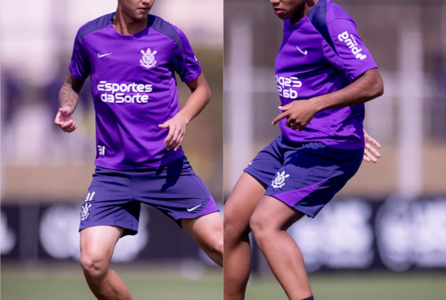 Os dois jovens da base comandarão o ataque do Corinthians [https://ge.globo.com/futebol/times/corinthians/] porque são muitos os desfalques neste setor e porque venceram a concorrência com Talles Magno, que vinha sendo a opção em jogos com desfalques, mas não estava se apresentando bem. Os atacantes titulares Memphis Depay, com lesão muscular na coxa direita, e Yuri Alberto, que passou por cirurgia de hérnia inguinal, estão no departamento médico. Ángel Romero cumpre suspensão depois de ter sido expulso contra o Juventude, na rodada passada, e Vitinho, o único reforço desta janela de transferências, ainda não tem condições físicas de começar jogando.