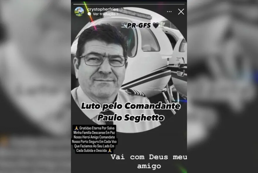 Um dos donos do avião que explodiu em Ubatuba manifestou seu luto pelo falecimento do piloto Paulo Seghetto, chamando sua morte de “perda irreparável”. O empresário Crystopher Fries agradeceu o trabalho do comandante e expressou sua eterna gratidão por ele ter salvado sua família, sendo um porto seguro em todos os voos realizados juntos.