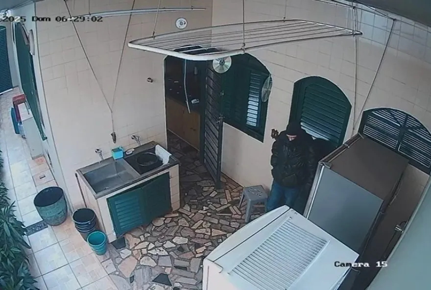 Segundo a Polícia Militar, três criminosos armados invadiram a residência, fizeram dois idosos reféns e fugiram em um carro com os bens. Imagens de câmera de segurança flagram a ação (assista acima).