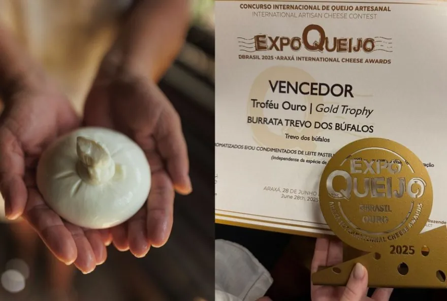 A burrata com gorgonzola & damasco de uma fazenda baiana conquistou medalha de ouro na categoria “Queijos Aromatizados de Leite Pasteurizado”, no concurso Araxá Internacional Cheese Awards, realizado em Minas Gerais. O queijo é produzido pela família Cangussu em Arraial d’Ajuda, distrito turístico de Porto Seguro, no extremo sul da Bahia.