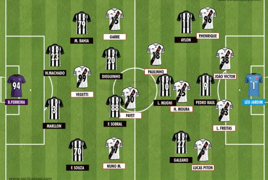 meio-campo. Lourenço voltou para o banco. Fernandinho seguiu fora e Aylon foi