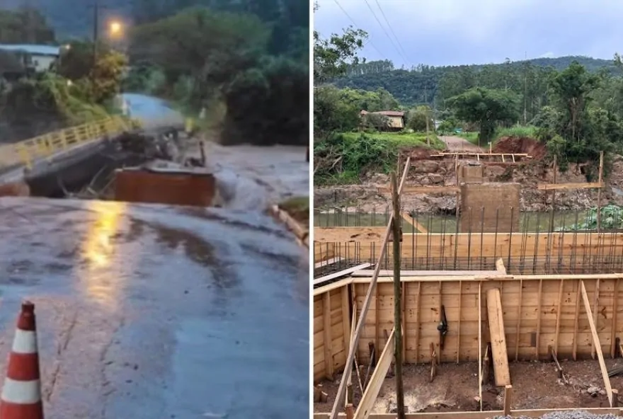 Como seguiu chovendo entre maio e junho, algumas etapas foram prejudicadas, conforme Gisele. O acumulado de chuva chegou a 762 milímetros na localidade de Linha José Júlio, onde ficava a ponte.