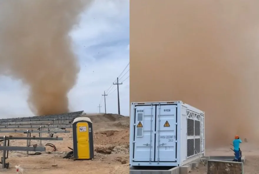 Um redemoinho surpreendeu os funcionários de um parque de energia solar em Icó, no interior do Ceará. O vídeo foi gravado por um dos trabalhadores, e compartilhado no próprio perfil do TikTok nesta segunda-feira (13). Além do fenômeno natural, a reação bem-humorada do grupo também chamou a atenção na internet.