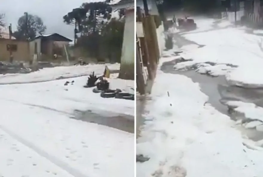 Nas redes sociais, circulam imagens impressionantes de uma rua coberta por uma espessa camada de gelo, evidenciando a intensidade do fenômeno. Apesar do susto e dos danos causados, não houve registro de feridos graves na região.