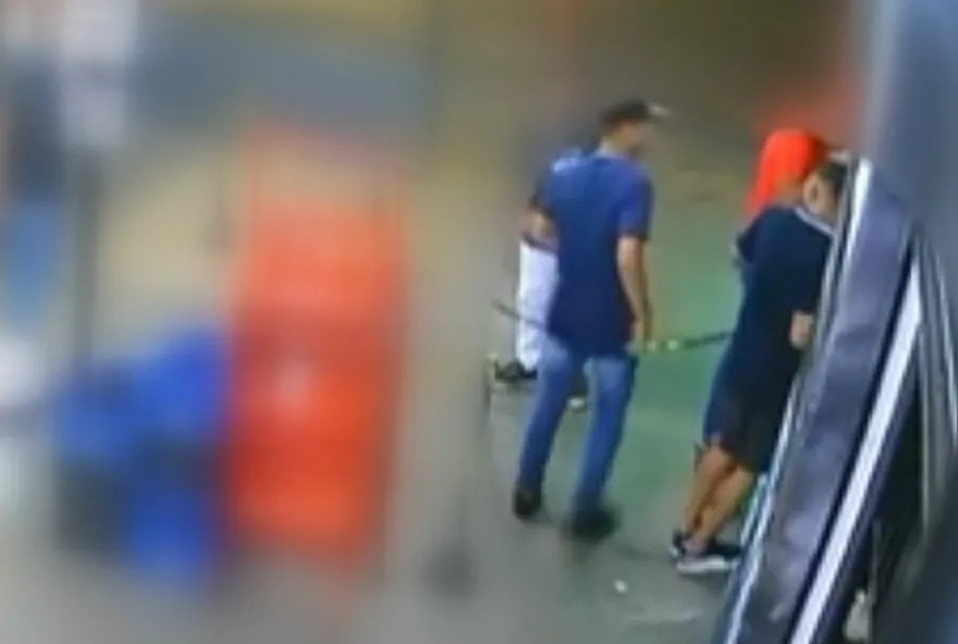 Câmera de segurança da distribuidora filmou os dois jovens comprando bebidas.