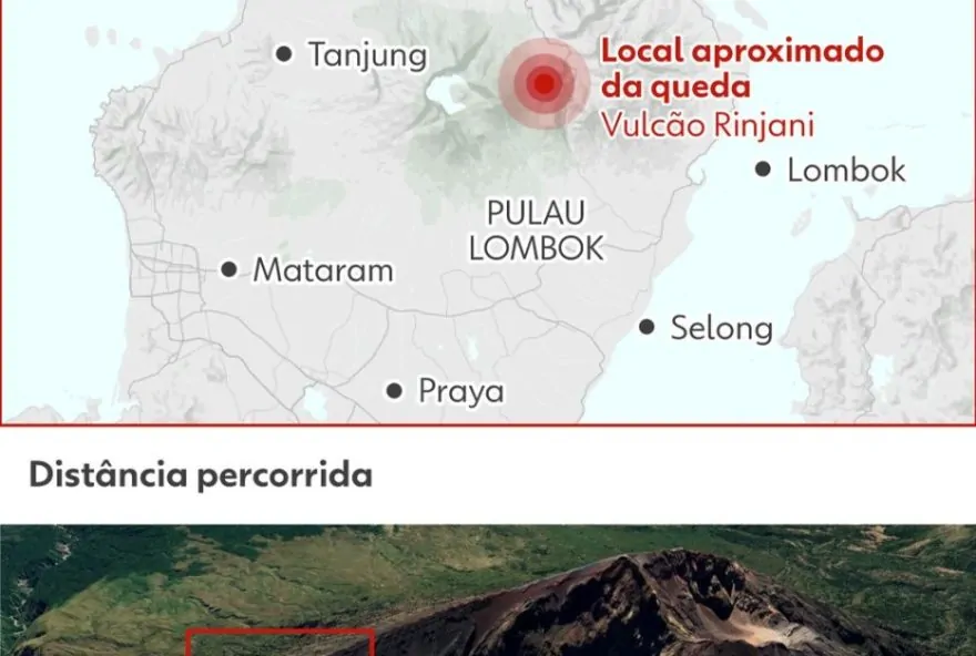 Juliana Marins, que fazia um mochilão pela Ásia, caiu durante uma trilha no vulcão Rinjani na madrugada de sábado, no horário local. Esse já é o 4º dia de buscas na Indonésia.
