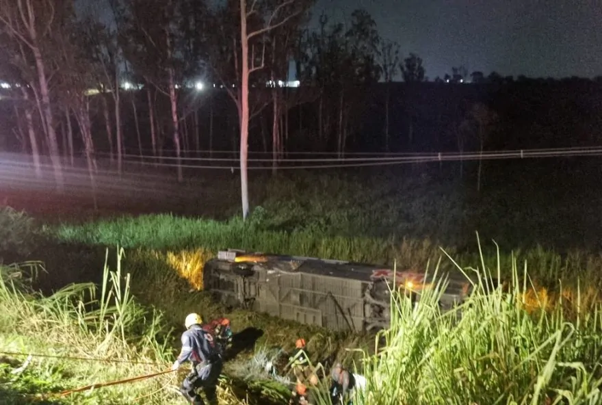 Um adolescente de 13 anos morreu no acidente e pelo menos 25 pessoas ficaram feridas no acidente que ocorreu na madrugada desta quinta-feira (6), no trecho de Pindamonhangaba (SP).