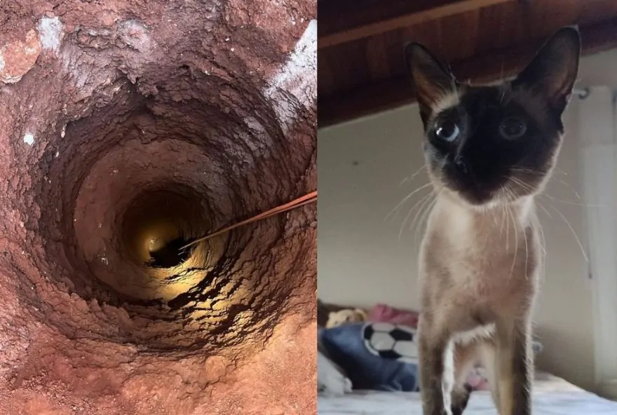O resgate de um gato que caiu em um buraco de aproximadamente 15 metros de profundidade durou mais de cinco horas em Maringá, no norte do Paraná. Para conseguir socorrer o animal, agentes do Corpo de Bombeiros usaram um pano em que ele costumava dormir, fazendo com que ele entrasse em uma caixa, que logo depois foi içada para a superfície.