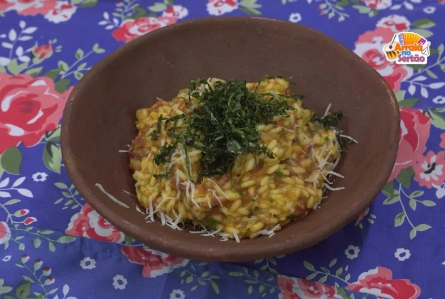 “Coração do Sertão”: Aprenda a fazer um delicioso risoto de jerimum com carne seca e queijo coalho, uma receita típica junina que promete conquistar seu paladar. O prato foi criado pela participante Maria da Paz e faz parte do Concurso de Culinária Junina da TV Grande Rio.