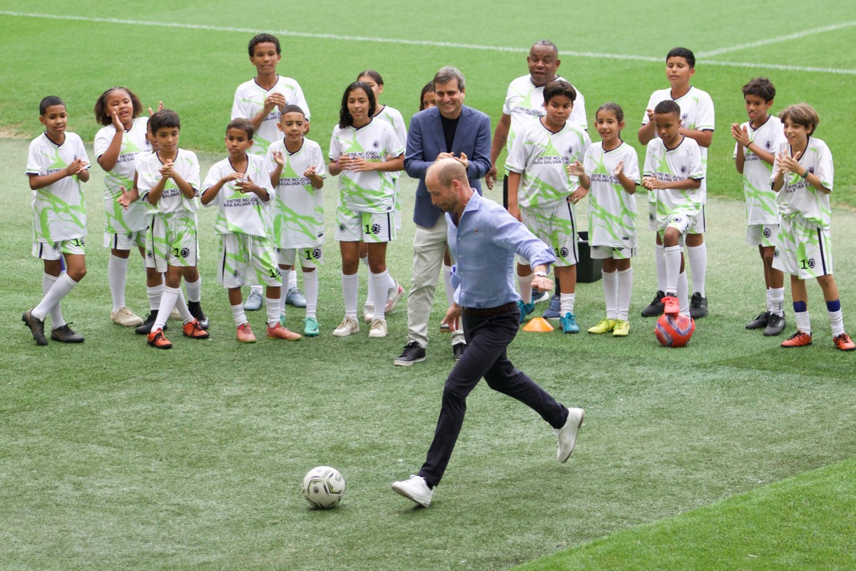 Irmãos da Praça Seca jogam futebol com príncipe William no Maracanã