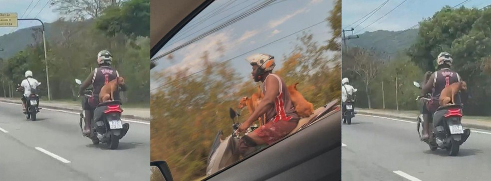 “Alerta: Motociclista leva cachorros de carona sem proteção, infração grave sujeita a multa e perda de pontos na CNH”