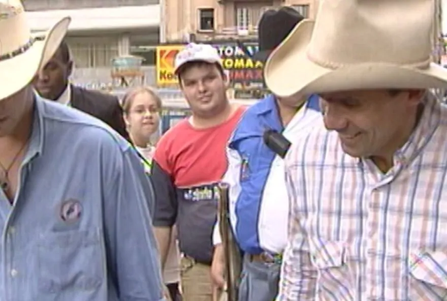 De lá, o cowboy foi seguido por uma carreata pelas ruas da cidade, distribuindo