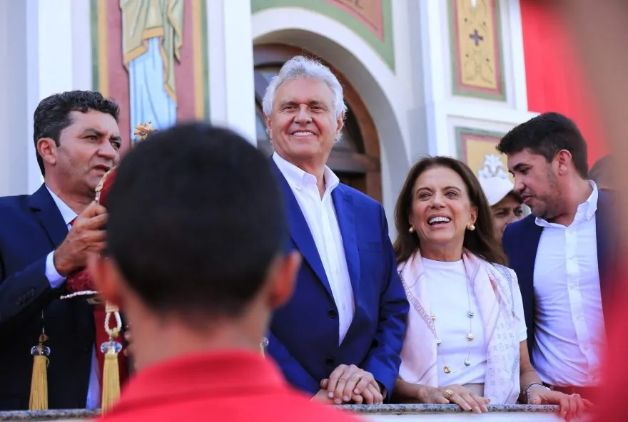 O governador Ronaldo Caiado e a coordenadora do Goiás Social, primeira-dama Gracinha Caiado, prestigiaram, na manhã deste domingo (19/05), a Festa do Divino e as Cavalhadas de Jaraguá, no Centro Goiano. Pela manhã, Ronaldo e Gracinha acompanharam o cortejo imperial, a santa missa e o sorteio do novo imperador da Festa do Divino, na Igreja Matriz de Nossa Senhora da Penha. Jaraguá é um dos municípios participantes do Circuito das Cavalhadas, iniciativa que contempla 15 cidades este ano e recebeu investimento de R$ 4 milhões do Governo de Goiás.