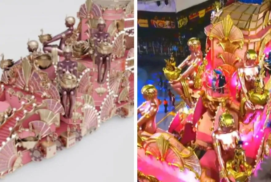 Antes e depois: veja projetos de carros da Rosas de Ouro e como ficaram no Sambódromo, após 7 meses de produção