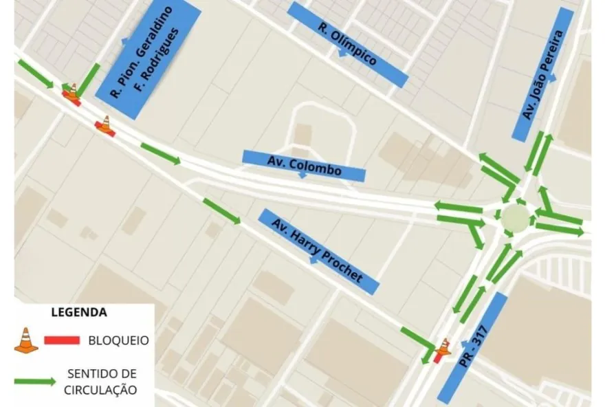 A orientação é de que veículos vindos de Campo Mourão pela PR-317 acessem Maringá, sigam para Paranavaí ou façam o retorno pela rotatória. Quem sai de Maringá poderá seguir para Paranavaí, para Campo Mourão ou retornar à cidade pela marginal. Veículos vindos de Paranavaí também terão acesso a Campo Mourão, Maringá ou retorno pela marginal. A Rua Olímpico vai atuar temporariamente em mão dupla, para permitir a saída dos veículos para a Avenida João Pereira. O acesso à Rua Olímpico a partir da rotatória vai continuar proibido. Agentes de trânsito da Secretaria de Segurança e da Polícia Rodoviária Federal (PRF) estarão no local para orientar os motoristas nos primeiros dias de alterações no trânsito. A sinalização viária também será reforçada.
