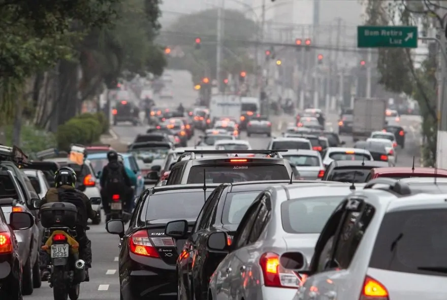 Trânsito de veículos n Avenida Santos Dumont, no sentido centro, em São Paulo, nesta manhã de segunda-feira, 18. O prefeito de São Paulo, Bruno Covas (PSDB), retomou o esquema tradicional de rodízio na cidade, que passa a valer a partir desta segunda-feira, 18. Ele anunciou também que tenta antecipar os feriados de — Foto: Werther Santana/AE