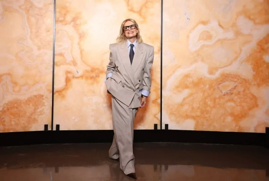 celebridades, influenciadores, lojistas e imprensa. Enquanto esta temporada trouxe mais cores e silhuetas amplas nos ombros, a primavera/verão 2025 teve uma forte ênfase na elegância imponente da alfaiataria feminina, além de vestidos com decote profundo e silhuetas boho.