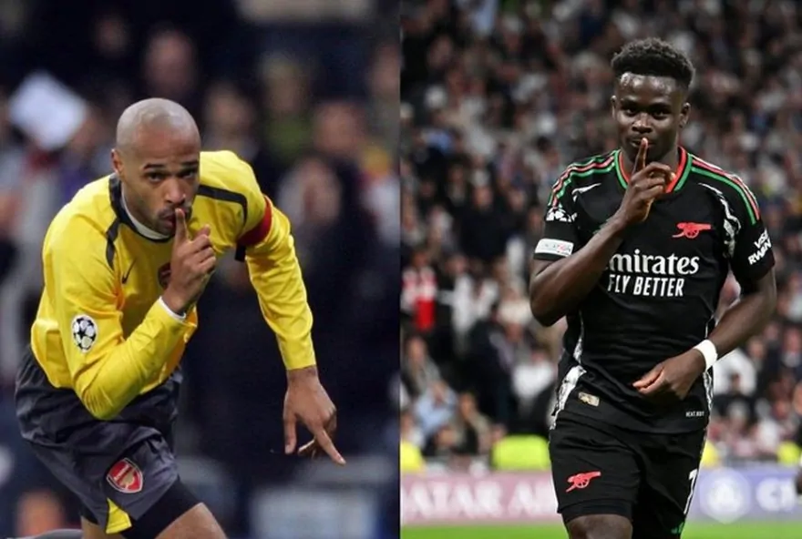 Saka repete gesto de Henry contra o Real Madrid no Bernabéu 19 anos depois; veja
