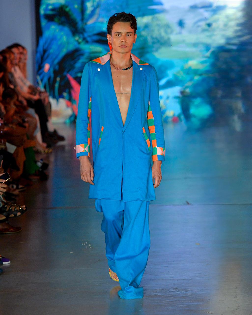 PASSARELA – De Senador Canedo para o cenário nacional, o modelo goiano Ruan Castro brilhou na Casa de Criadores, realizada no Centro Cultural de São Paulo. Na foto, ele desfila para a marca Berimbau, no dia 6 de dezembro (sábado), após integrar o casting de Lucas Caslú e da marca autoral Vitor Cunha, consolidando sua ascensão nas passarelas e realizando um sonho de infância