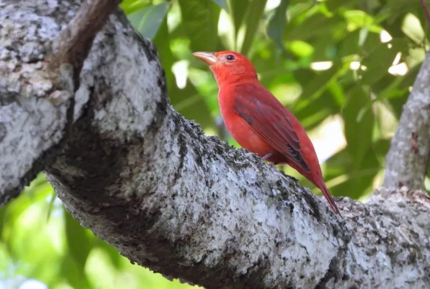 No começo de novembro uma ave vermelha foi fotografada em uma mata urbana do município de Rio Branco, no Acre. A espécie em questão tratava-se do sanhaço-vermelho (Piranga rubra) uma ave migratória que deixa o hemisfério norte e que pode ser avistada na região amazônica do Brasil entre os meses de outubro a meados de março. A intensidade da coloração avermelhada do macho dessa espécie, somada ao bico e aos detalhes discretos em preto na asa, são pontos que permitem a diferenciação dessa ave migrante com uma espécie que ocorre no Brasil o sanhaço-de-fogo (Piranga flava).