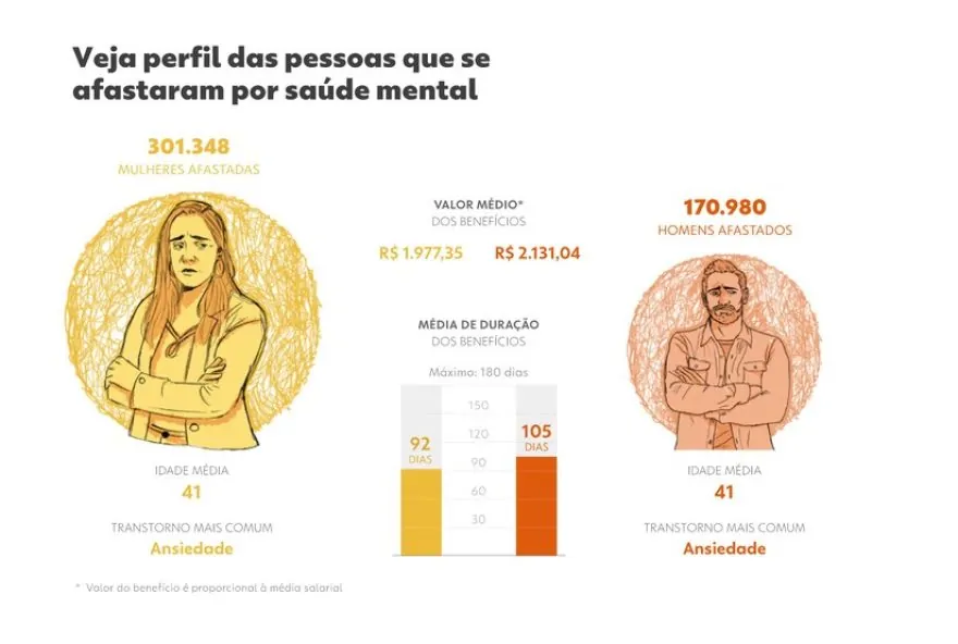 Procurado pelo DE, o Instituto Nacional do Seguro Social (INSS) não informou quanto de sua verba foi revertida em assistência à saúde mental. Apesar disso, esclareceu que as pessoas passaram, em média, três meses afastadas, recebendo cerca de R$ 1,9 mil por mês. Considerando esses valores, o impacto pode ter chegado a até quase R$ 3 bilhões em 2024.