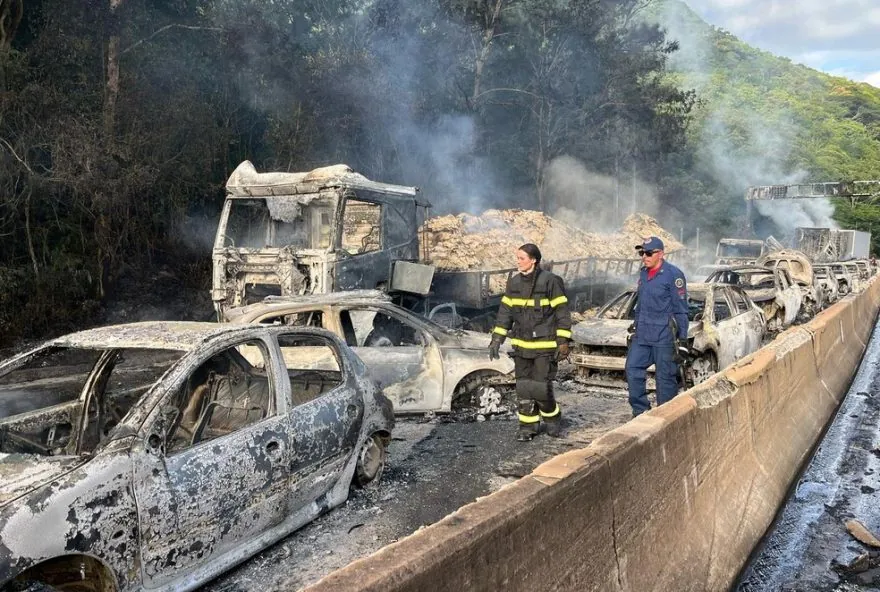 Em abril, um caminhão tombou, explodiu e incendiou mais de 20 veículos na BR-101