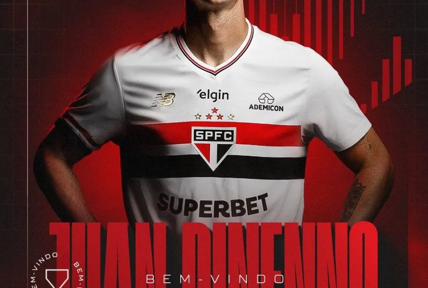 O São Paulo de [https://globoesporte.globo.com/futebol/times/sao-paulo/] revelou nesta terça-feira a contratação do centroavante Juan Dinenno, proveniente do Cruzeiro. Com 30 anos, o jogador chega ao Tricolor por empréstimo até o final do ano, com a possibilidade de ampliar o contrato até 2025, de acordo com o desempenho em campo.