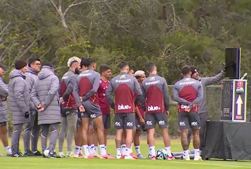 O treino do São Paulo teve um diferencial tecnológico nesta semana, com o auxílio de monitores para orientar os jogadores durante um coletivo de 11 contra 11 promovido pelo técnico Luis Zubeldía. A atividade ocorreu no quinto dia de treinos nos Estados Unidos, onde a equipe paulista realiza sua pré-temporada.