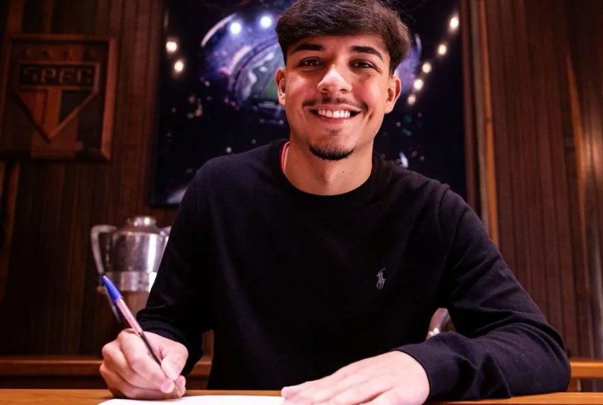 O São Paulo acaba de renovar o contrato do jovem atacante Gustavo Miranda, de apenas 18 anos, que integra atualmente o elenco sub-20 do clube. Com a renovação, o jogador passa a ter vínculo válido até o final de 2027. Gustavo Miranda é agenciado pelo ex-volante Fábio Simplício, ídolo do Tricolor paulista.