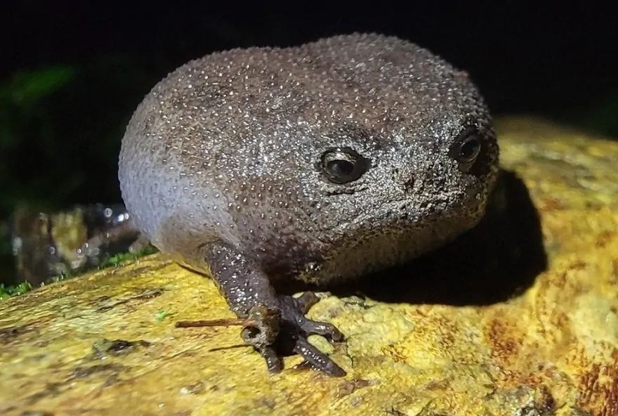 surpreende com sua aparência carrancuda e hábitos inusitados, o Black Rain Frog
