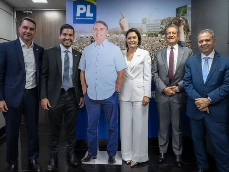 Crise no PL: Michelle posta foto com Bolsonaro de papelão, Flávio, Valdemar e André Fernandes
