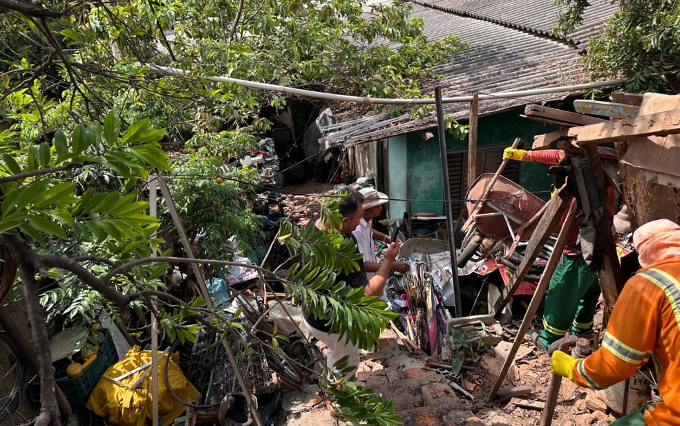 Prefeitura de Goiânia remove 14 toneladas de lixo de casa na Vila Romana. Limpeza compulsória foi realizada após identificação de riscos à saúde e segurança.
