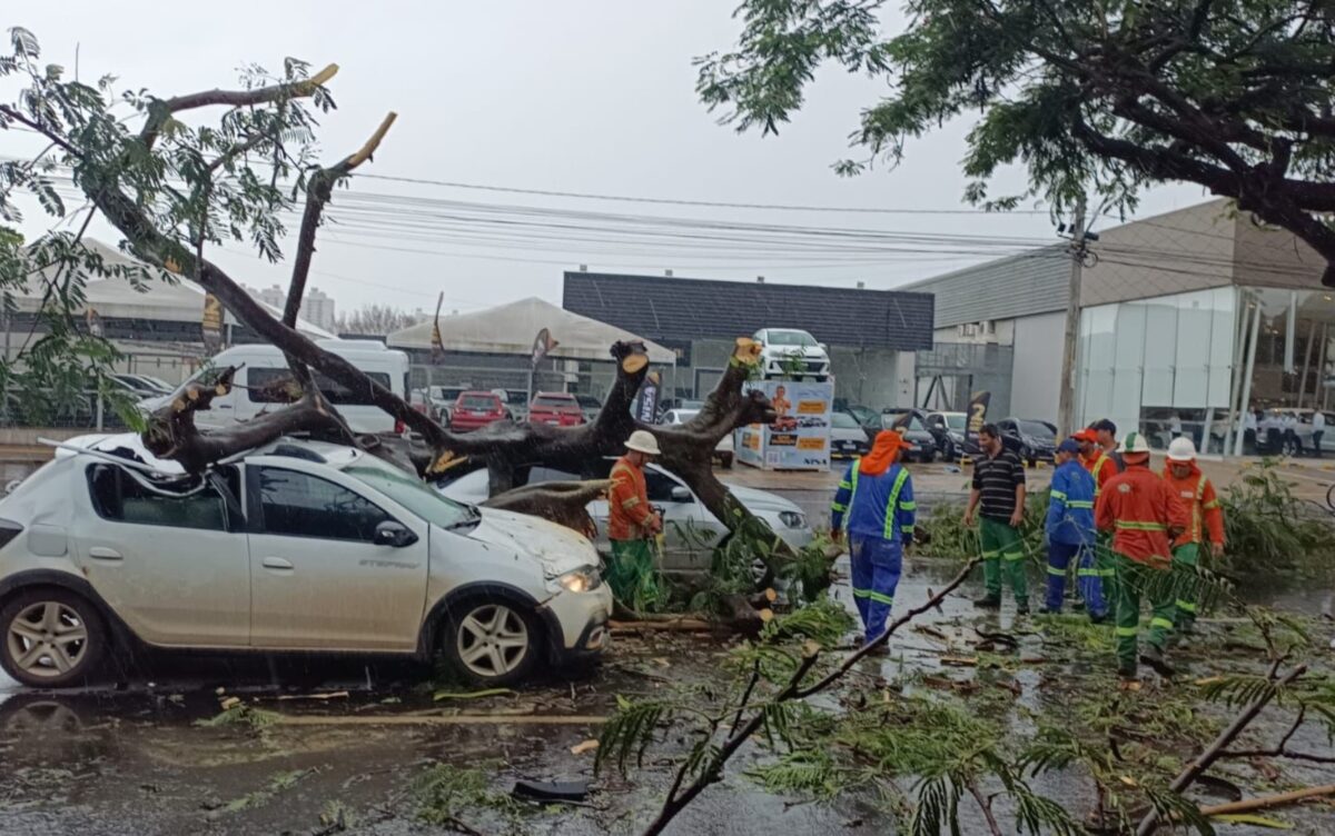 Árvore cai na Avenida Independência, em Goiânia, atingindo dois veículos e assustando motoristas. Bombeiros liberaram a via e não houve feridos no incidente.