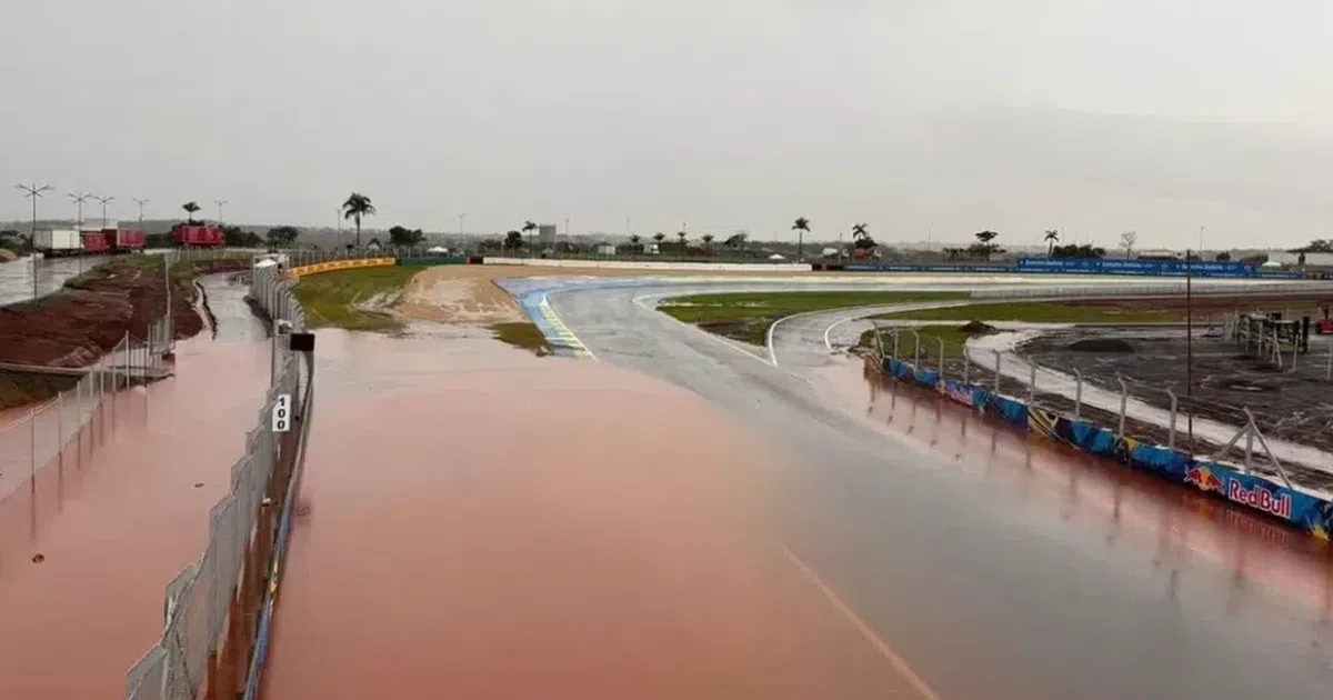 Chuvas intensas ameaçam os treinos e corridas do Grande Prêmio do Brasil em Goiânia, expondo limitações de infraestrutura no circuito.
