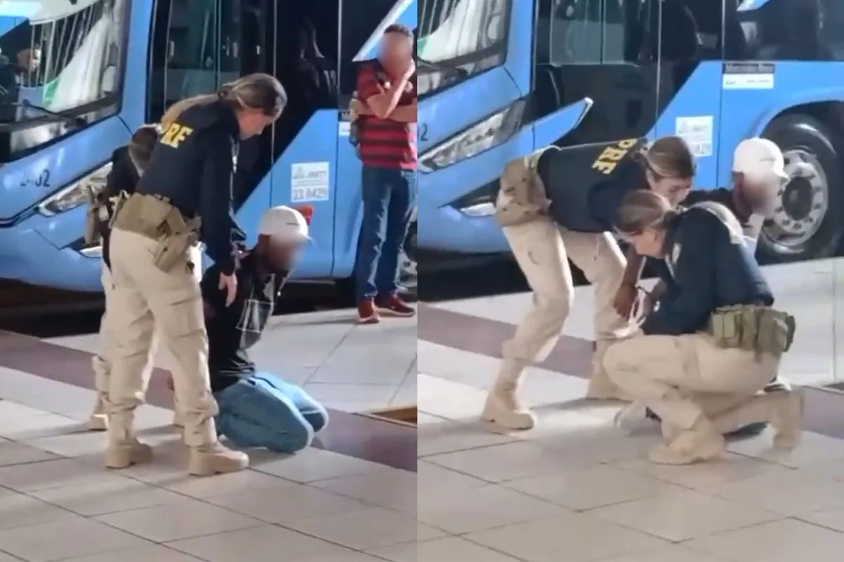 Homem preso após tentar furtar arma de policial durante ação educativa na Rodoviária de Goiânia. Operação visava combater importunação no transporte público.