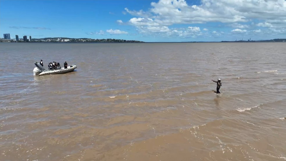 Bancos de areia no Guaíba permitem andar sobre as águas devido à baixa do nível do lago. Marinha emite alertas para navegação segura e minimização de impactos.
