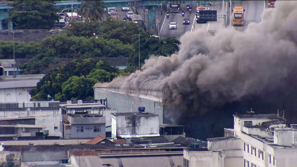 Incêndio atinge galpão da empresa Motocriss em Ramos, Rio de Janeiro