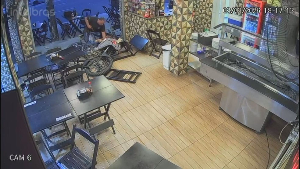 Suspeito de roubo é baleado e invade bar com moto em São Gonçalo. Adolescente de 17 anos foi apreendido após cair com veículo no estabelecimento. Caso segue sob investigação da 72ª Delegacia de Polícia.