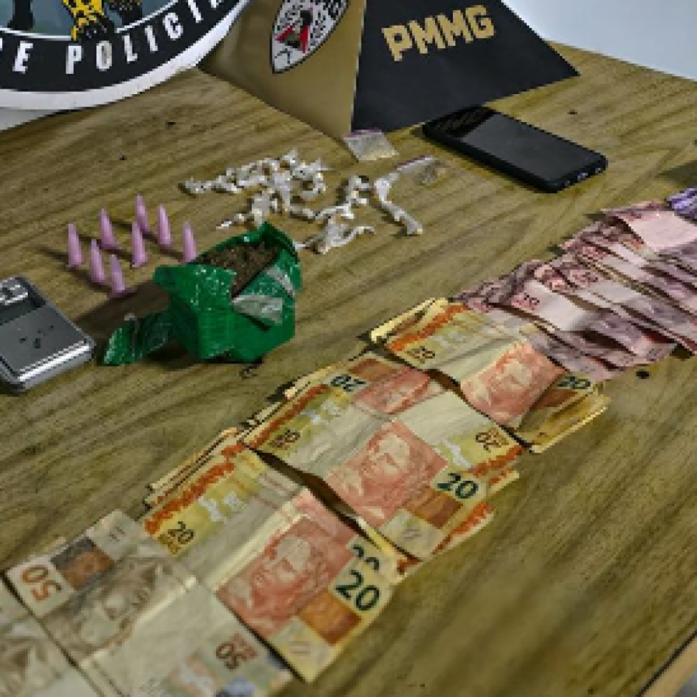 Operação da PM resulta em detenção de 2 homens e apreensão de 6 menores por tráfico de drogas em Ribeirão das Neves: entorpecentes, armas e dinheiro apreendidos