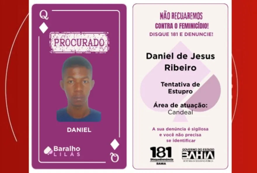 Um homem suspeito de estupro foi preso na manhã desta sexta-feira (26), em Feira de Santana, segunda maior cidade da Bahia. Daniel de Jesus Ribeiro, de 27 anos, era um dos integrantes do “Baralho Lilás”, ferramenta criada pela Secretaria da Segurança Pública da Bahia (SSP-BA) para ajudar nas buscas por homens acusados de violência contra a mulher.