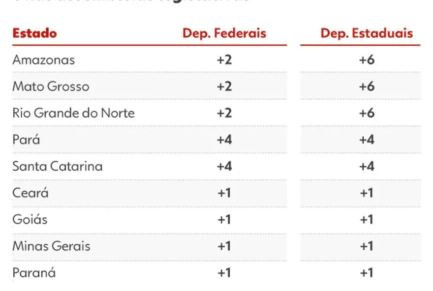 A medida redistribui cadeiras entre os estados, elevando o número de representantes de unidades da federação que ganharam população nas últimas décadas — como Amazonas, Santa Catarina, Goiás e Pará — e reduzindo o número de parlamentares de estados que perderam participação populacional, como Rio de Janeiro, Rio Grande do Sul e Piauí.