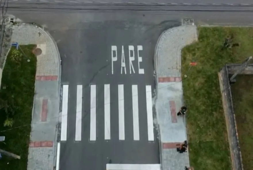 A situação inusitada de sinalização incorreta foi flagrada em uma rua de Colombo, na Região Metropolitana de Curitiba. Em meio à paisagem urbana de uma esquina entre a Rua das Ameixeiras e a Rua das Bananeiras, os moradores ficaram intrigados e confusos com o aviso de ‘Pare’ pintado à frente da faixa de pedestres. Essa pintura orienta os motoristas a frearem em cima das linhas brancas, indo contra as normas de trânsito estabelecidas.