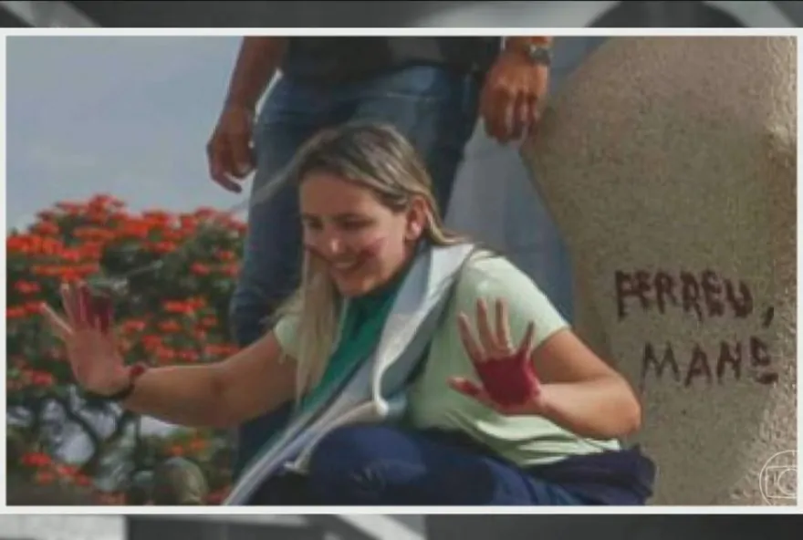 Débora é acusada de de ter pichado a frase “Perdeu, mané”, na estátua “A Justiça”, que fica em frente ao edifício da Corte. Além de deterioração e dano, ela responde por outros três crimes.