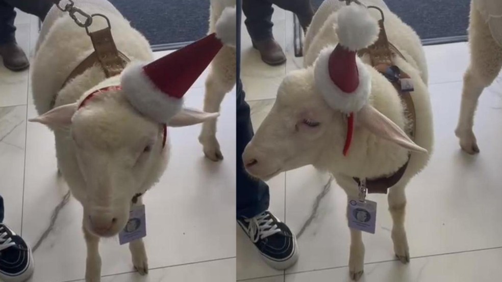 Ovelhas com touquinhas de Natal levam alegria a pacientes em hospital de Curitiba
