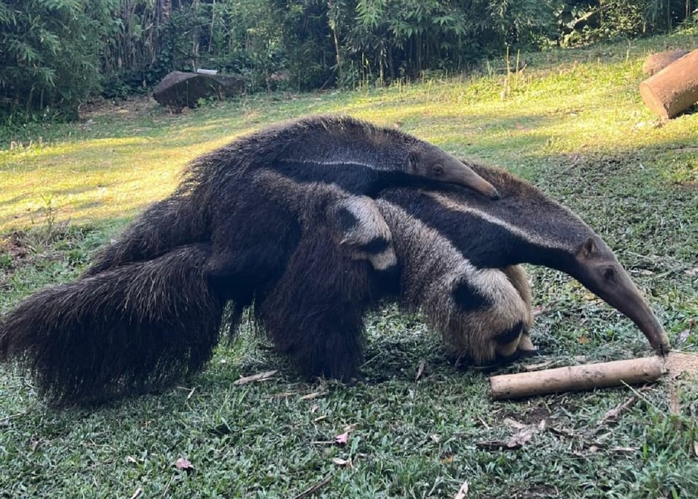 Tamanduá-bandeira nascida em cativeiro no RS completa 6 meses: veja como está