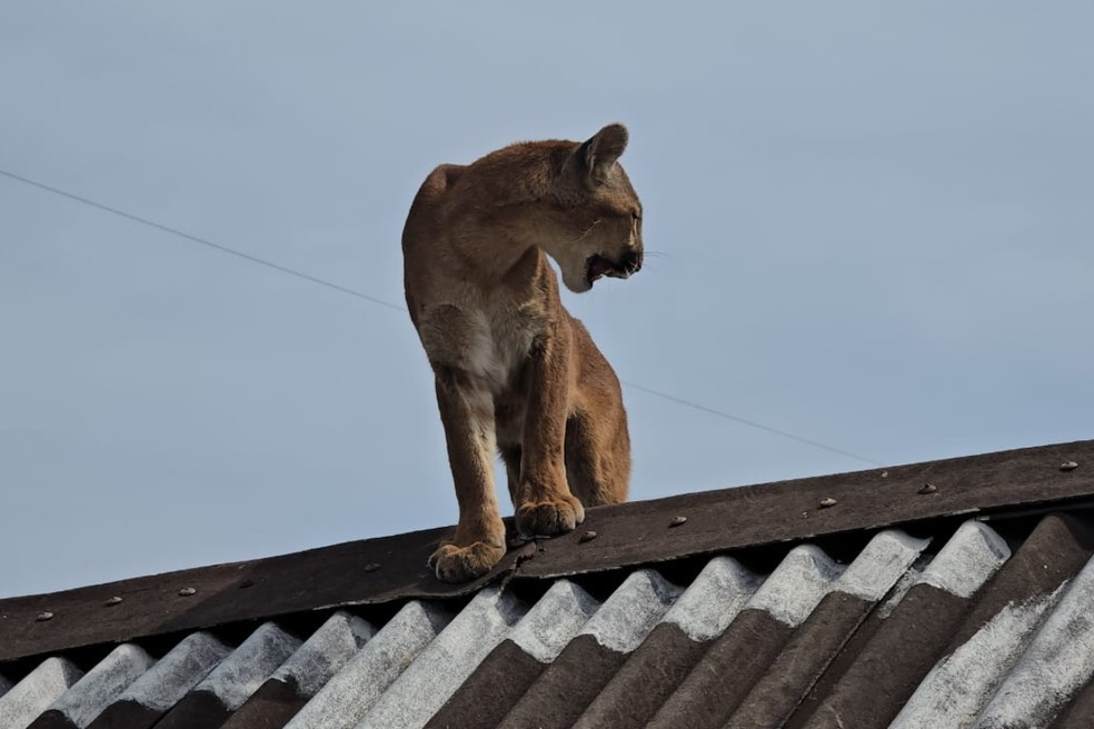 Resgate de onça-parda em telhado no Paraná: animal é levado para reabilitação em Londrina